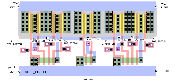 Schematic of the standard cell "aof2401" with device sizes in lambda.