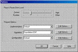The main option you may wish to adjust is the Place & Route Effort Level. Click OK to return to the “Synthesis/Implementation settings” dialog box.