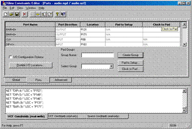 Example:     The UCF for the Audio Project  is called “audiopins.ucf”. Specify this file in the “Custom” dialog box and click “OK”.