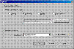 Example:     For our CPLD example it is not necessary to change any synthesis options. The default values are correct.